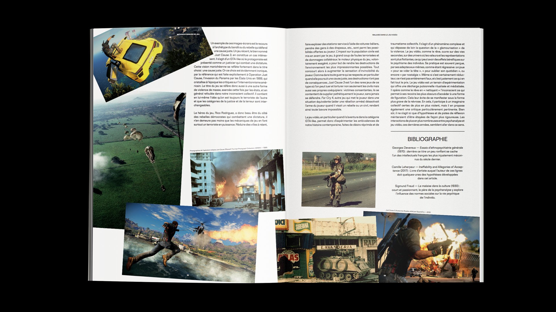 Au centre de ce premier opus se trouve la question fondamentale de l’espace virtuel. À travers quatre articles de fond, il explore les différentes facettes de ce lieu paradoxal, à la fois ouvert et fermé. Il y est question d’analyser la progressive mise en données de nos existences (Mohamed Megdoul), de narration environnementale (Paul Sztulman), ou encore d’analogies entre le fonctionnement du rêve et celui du jeu vidéo (Angelo Careri).